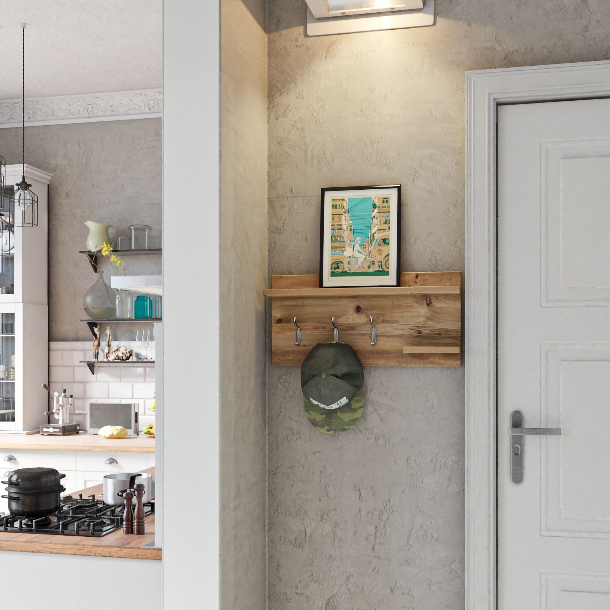 Vegghylle laget av tre.