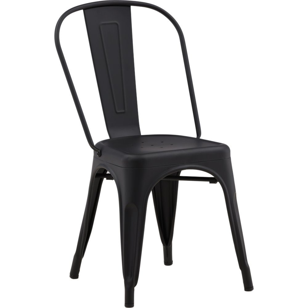 Klassisk design med moderne funksjoner og slitesterke materialer som tåler tidens tann. Denne spisestuestolen har lett utsvingte ben som jevnt møter sete og ryggstøtte i et stilig design, helt laget av svart metall. Match med et stilig spisebord og du får en komplett spisegruppe som tåler tidens tann!