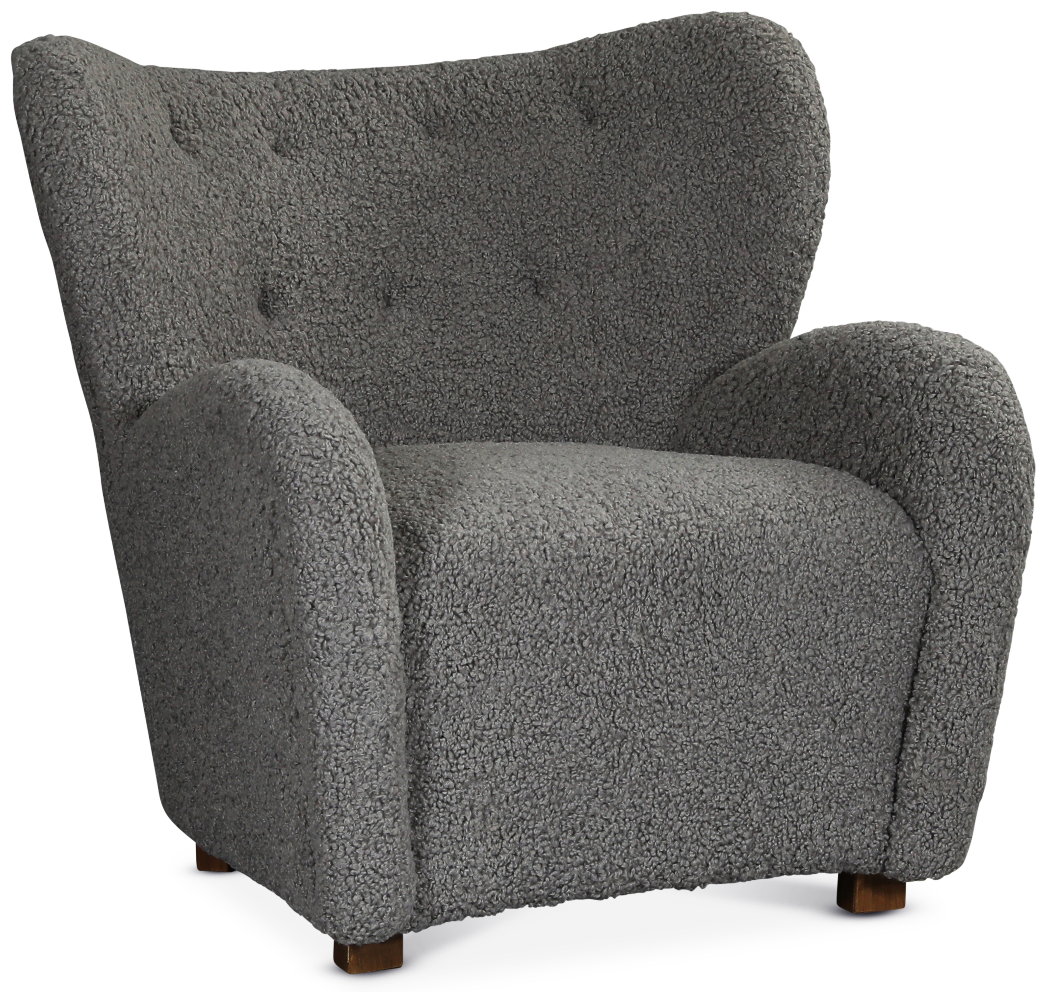 Buffalo er en romslig og solid lenestol. Lenestolen med en behagelig komfort og fantastisk mykt grå teddy-materiale. Brune massive bein.