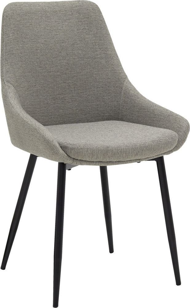 Theo stol med god sittekomfort og moderne, pent design. Kledd med et beige stoff. Svarte stålben.