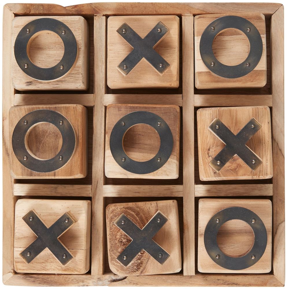 Spillet Tic tac toe i naturlig farget tre med svarte symboler.