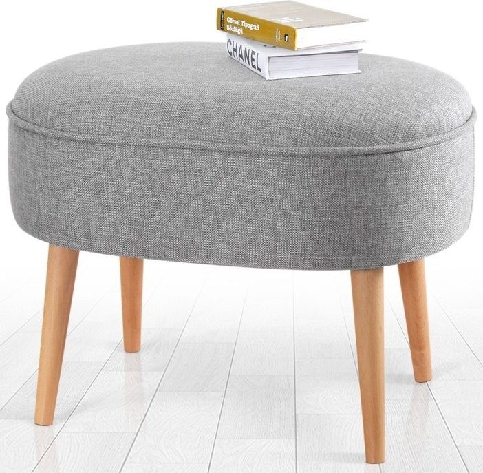 Puff laget av tre. Kledd med lin. Stoppe skum.