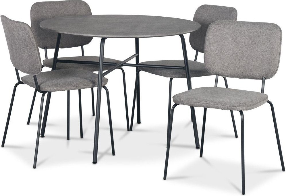 Tofta spisegruppe Ø100 cm bord i betongimitasjon + 4 stk Lokrume grå stoler:
