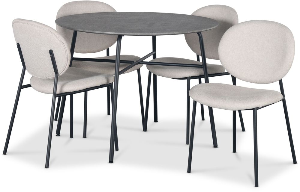Tofta spisegruppe Ø100 cm bord i betongimitasjon + 4 stk Tofta beige stoler