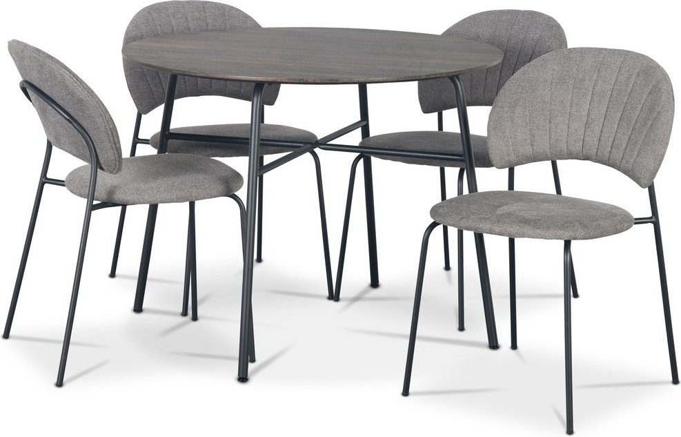 Tofta spisegruppe Ø100 cm bord i mørkt tre + 4 stk Hogrän grå stoler