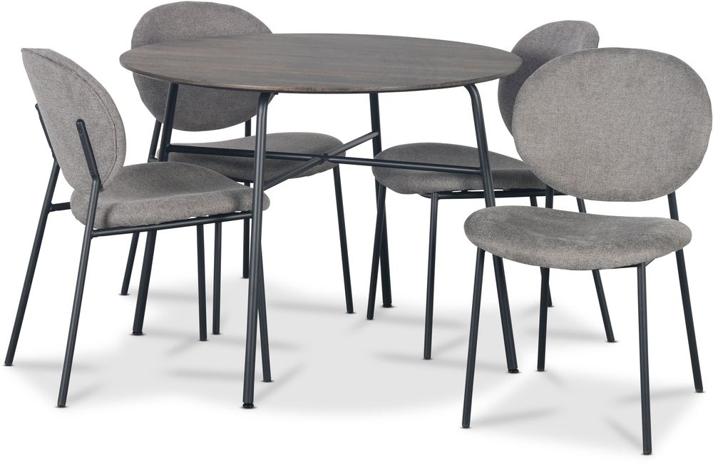 Tofta spisegruppe Ø100 cm bord i mørkt tre + 4 stk. Tofta grå stoler
