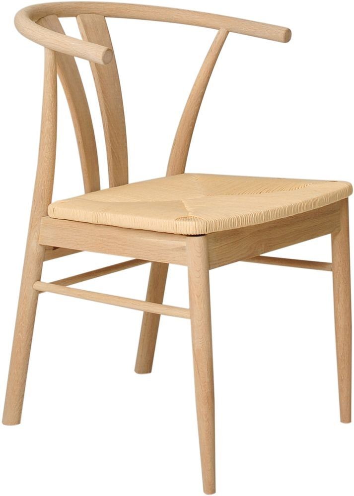 Torvald stol med harmonisk utstråling. Setet er flettet i beige, trestamme i hvitpigmentert oljet eik.