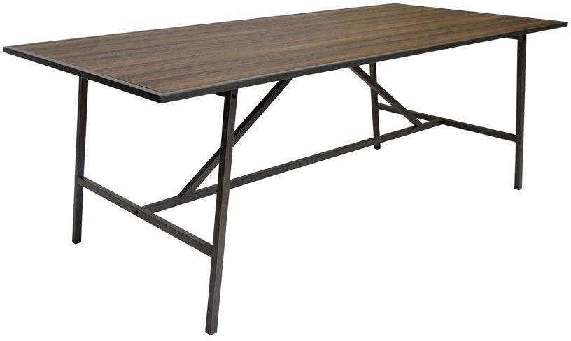 Spisebord med et moderne design. Understellet er produsert i svartmalt metall og bordplaten er av MDF med et vakkert brunt trefolie. Passer perfekt inn i med mer ennet og lar seg enkelt kombinere med de fleste spisestolene.