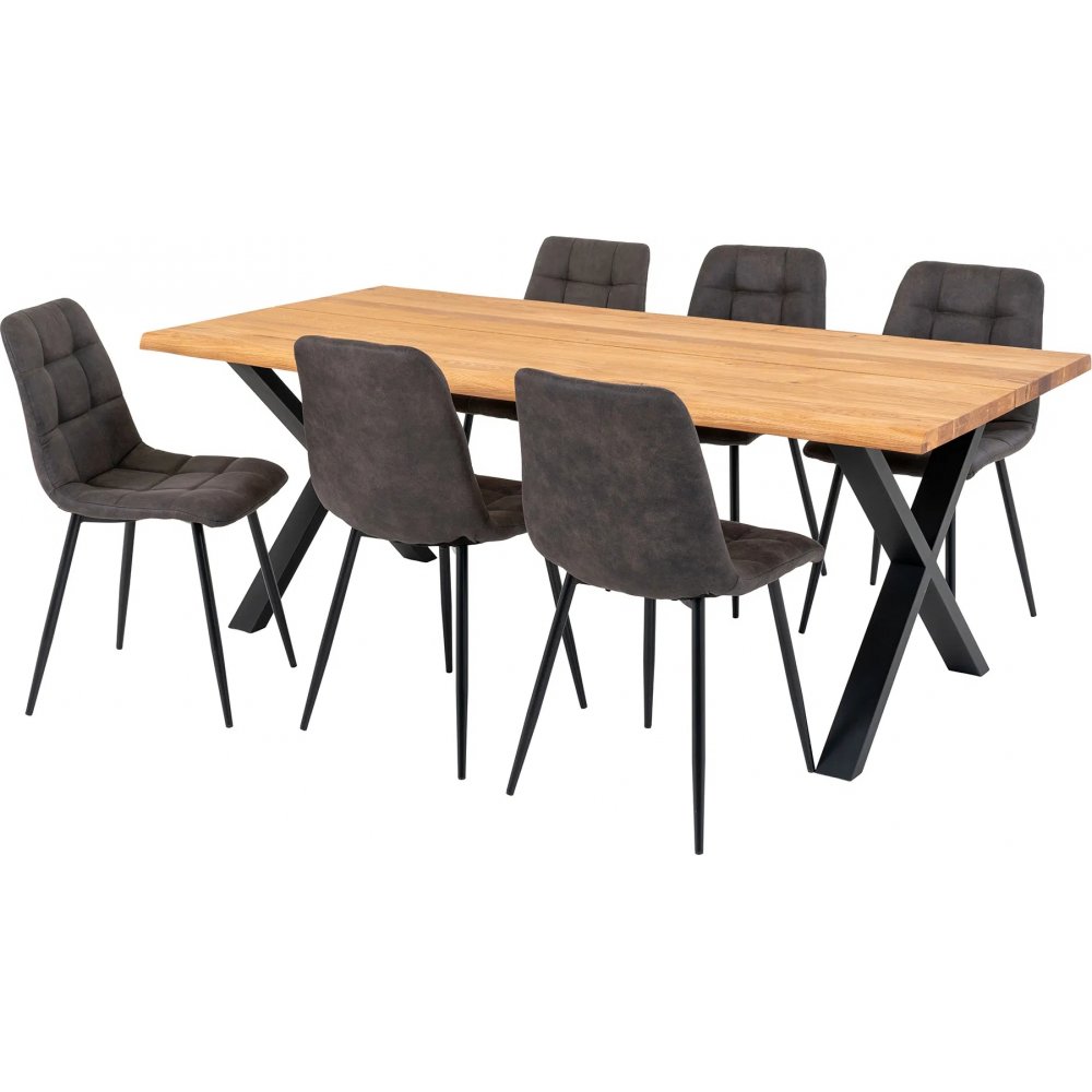 Spisesett bestående av Toulon spisebord 200 x 95 cm i oljet eik med sorte ben og 6 grå Middelfart spisestoler . Leveres umontert.