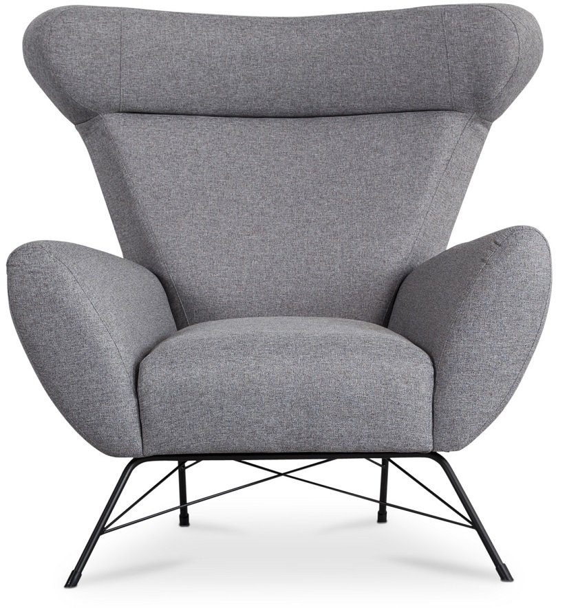 Town er en moderne ørelappslenestol for både hjem og offentlige miljø. Lenestolen er kledd i et lysegrått mykt og slitesterkt stoff som passer inn i de fleste miljøer. Svartlakkert metallunderdel. Det kan suppleres med fotskammel fra samme serie.