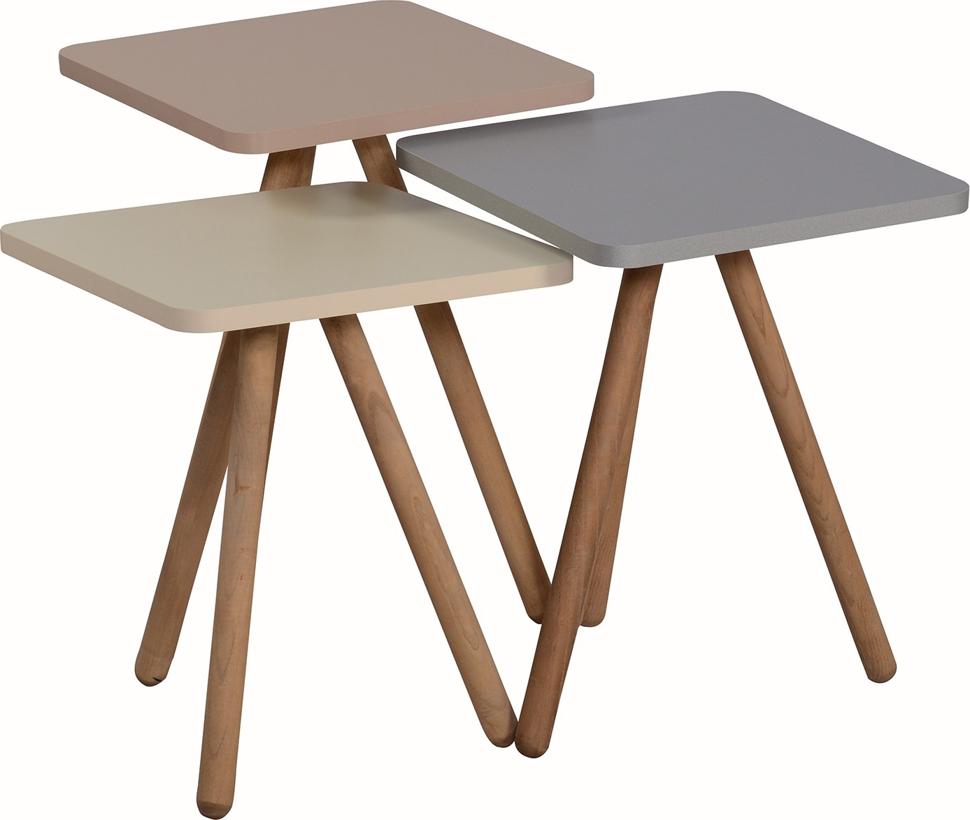 Trippelsett bord 34 x 34 cm - Cappuccino/grå/krem