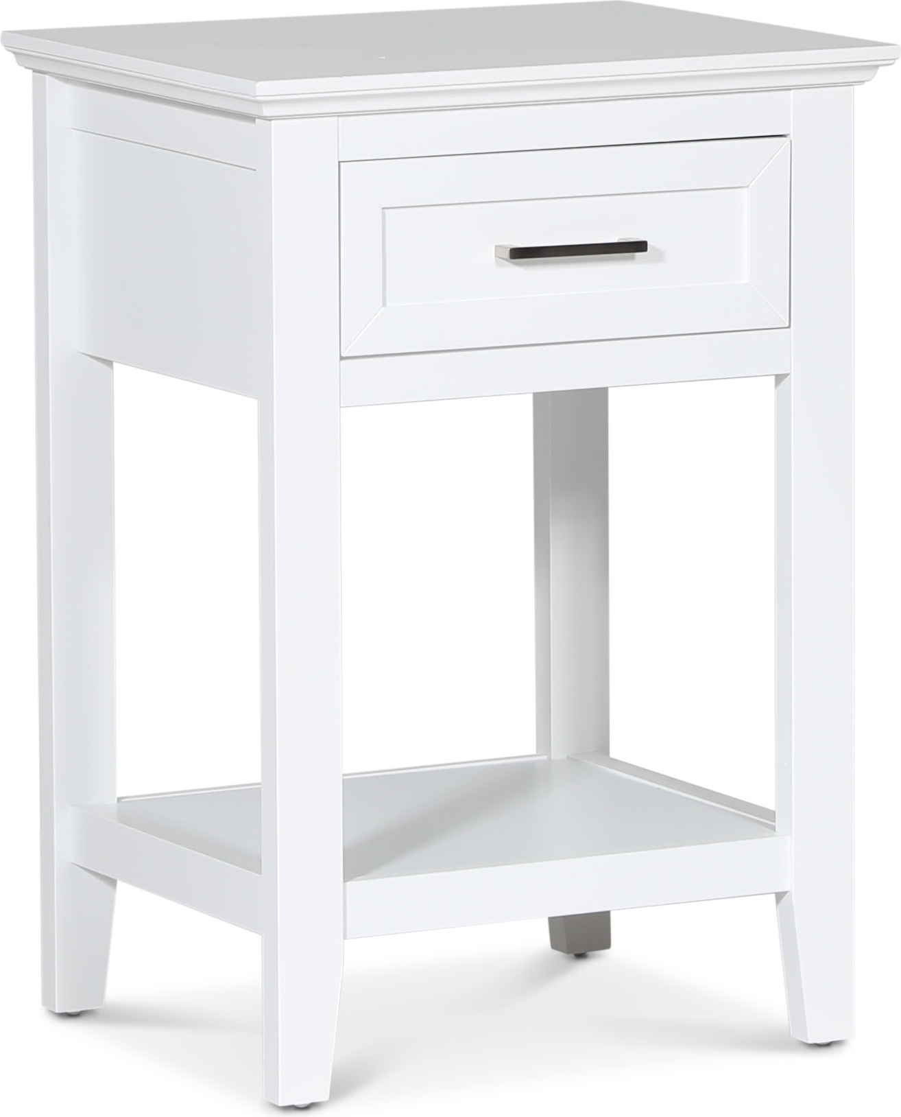 Tromsö nattbord i klassisk skandinavisk design. Nattbordet har en utdragbar skuff og en hylle for oppbevaring.