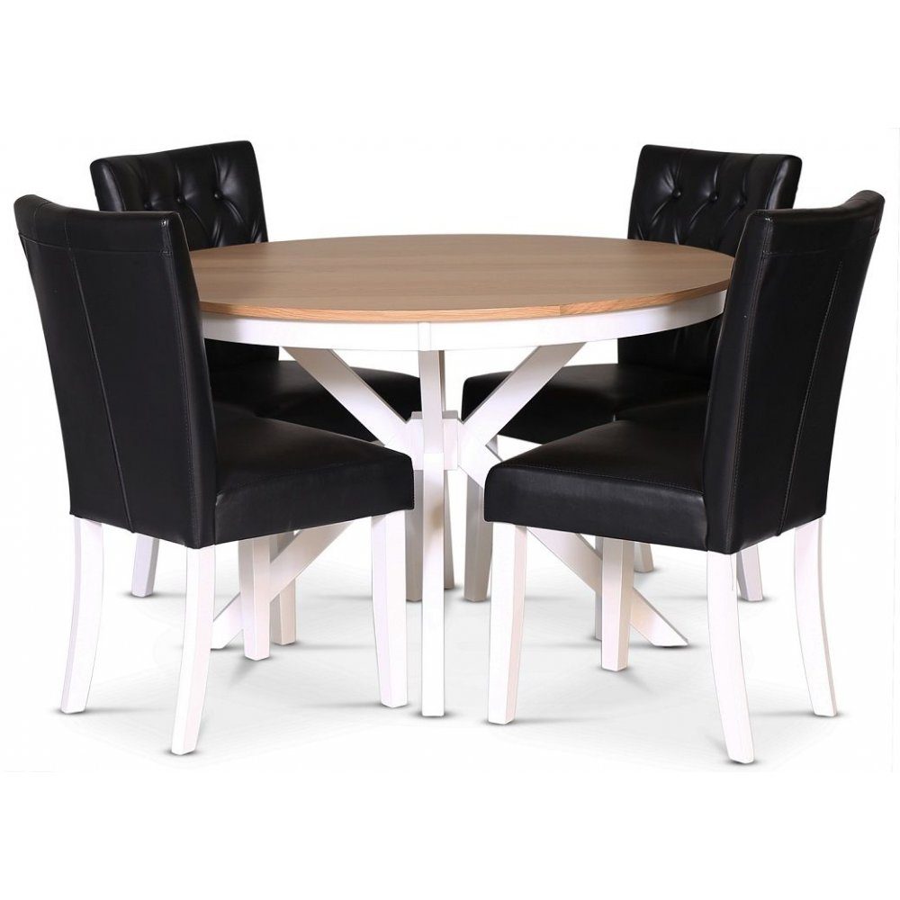 Tromsö spisegruppe 120 cm inkl. 4 stk. Crocket svarte spisestoler - Hvit / Eik