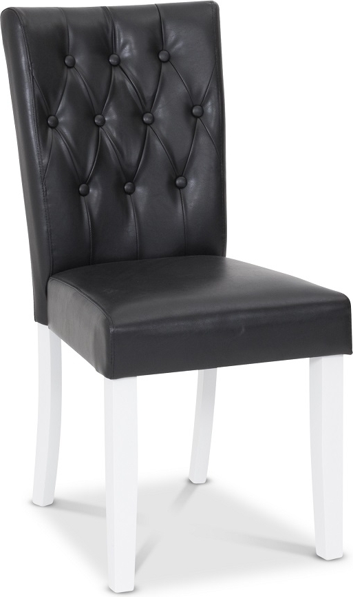 Heltrukne stoler i svart PU-trekk. En komfortabel og robust stol som gir et solid inntrykk og passer til mange forskjellige spisebord. Hvitlakkerte treben og knapper i ryggen som en stilig detalj! Buet rygg for å gi en komfortabel sittekomfort!