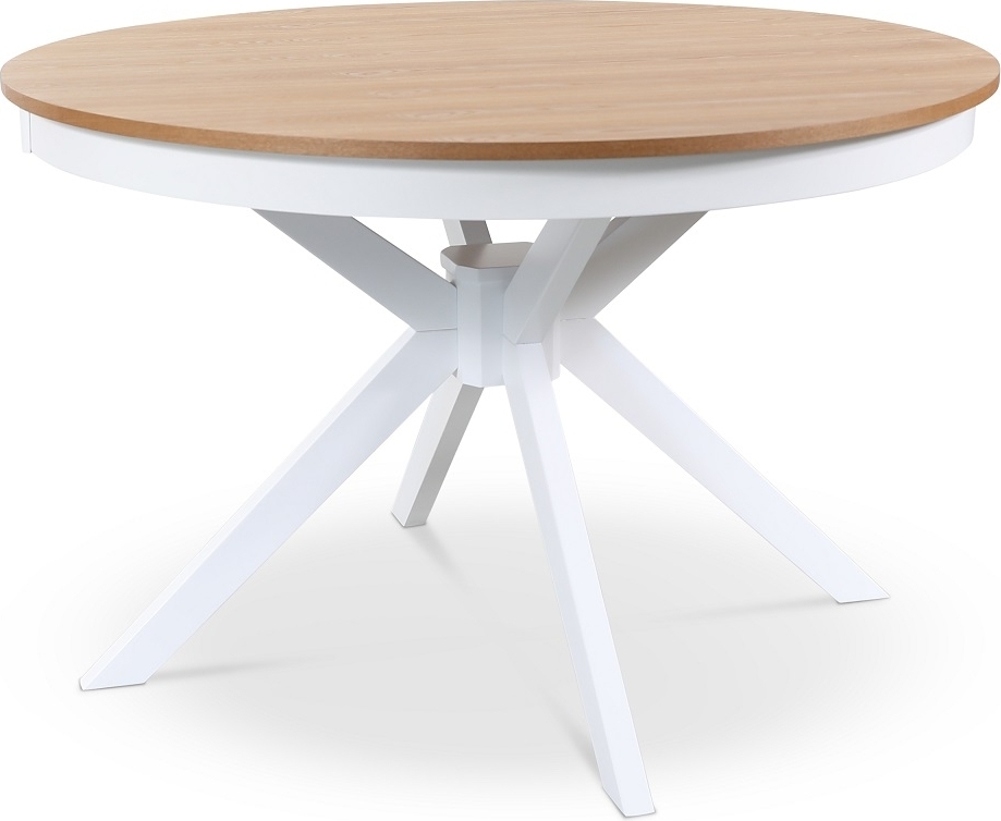 Tromsø spisegruppe; rundt spisebord 120 cm - Hvit / oljet eik med 4 Skagenstoler med grått sete: