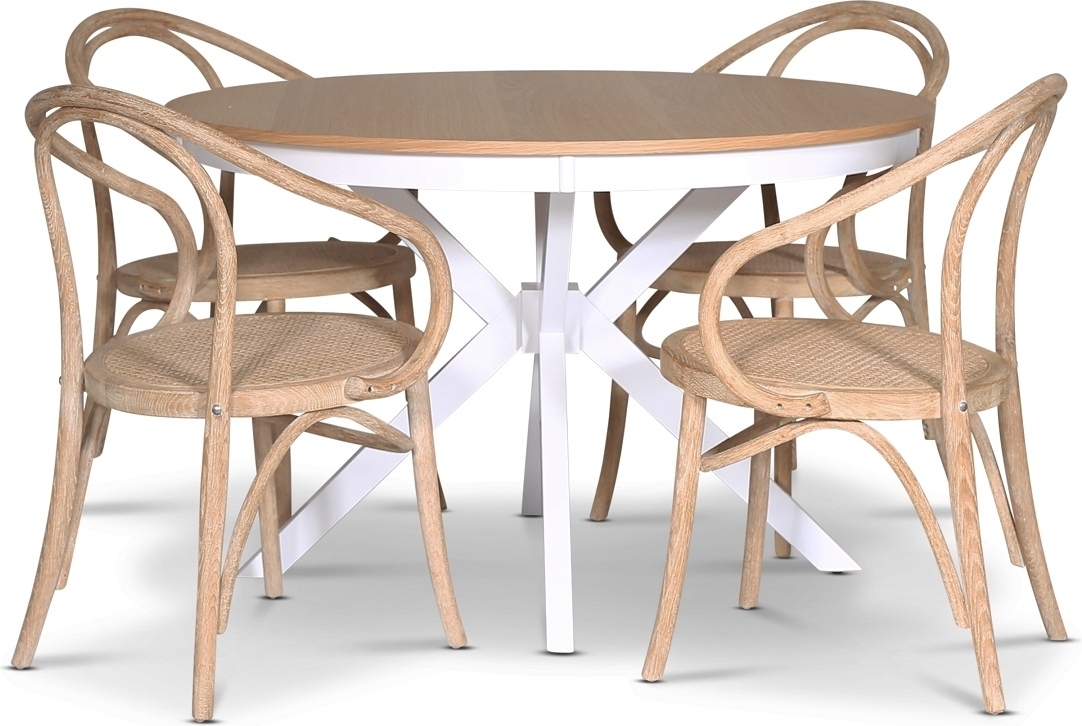 Tromsø spisegruppe; rundt spisebord Hvit / Eik med 4 stk Danderyd No.30 lenestoler whitewash