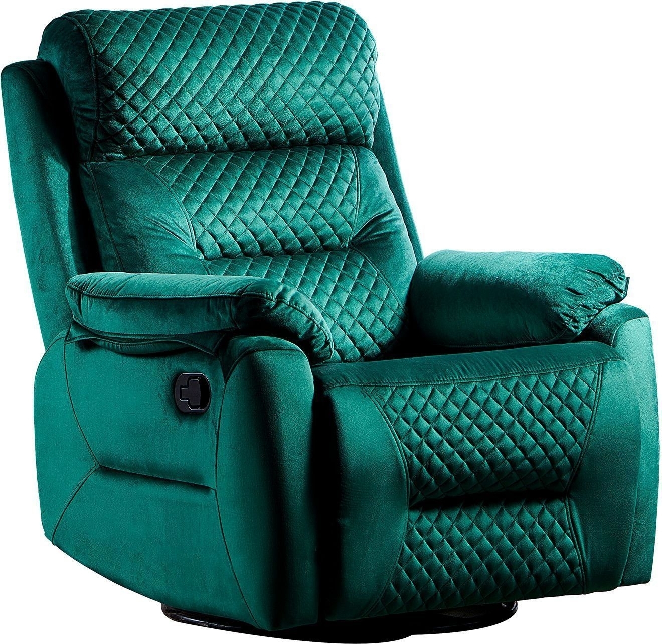 Recliner lenestol laget av tre, trukket med stoff. Manuell recliner-mekanisme.