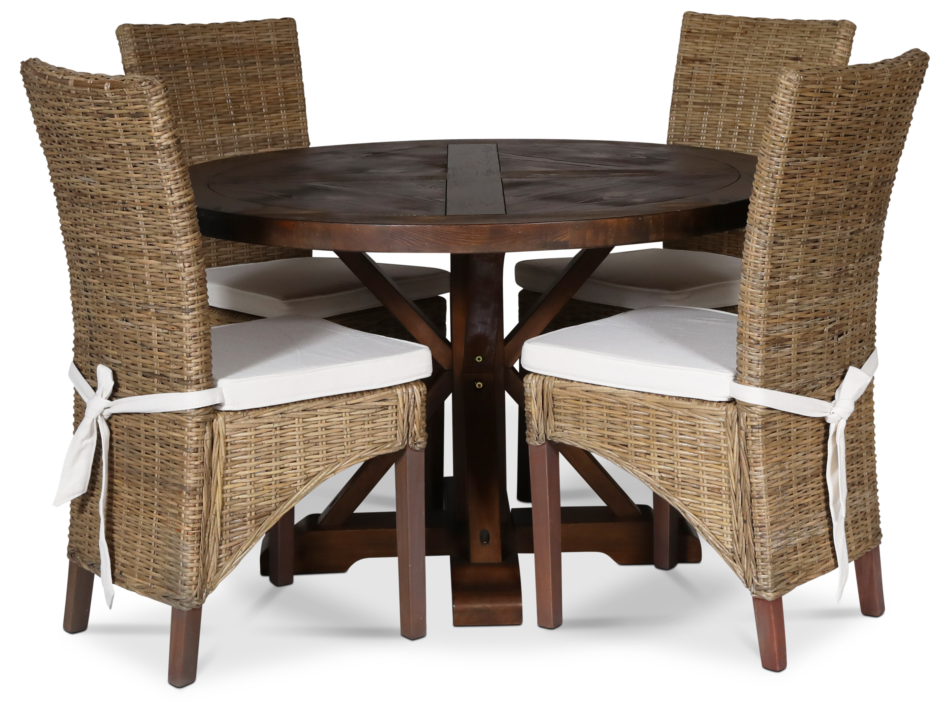 Tuva spisegruppe; rundt spisebord, Drivved + 6 Croco spisestoler med pute