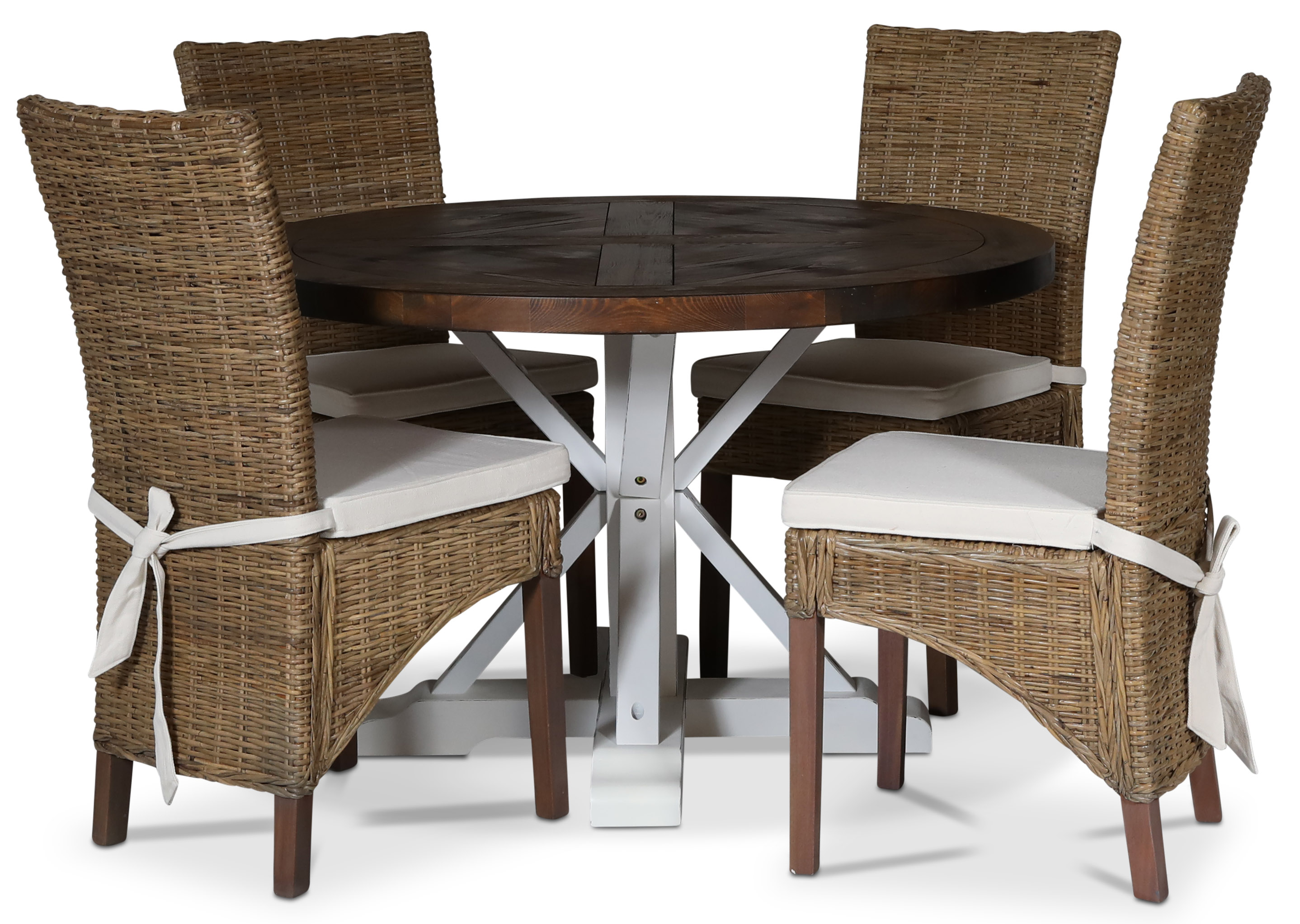 Tuva spisegruppe; rundt spisebord, Drivved / Hvit + 4 Croco spisestoler med pute