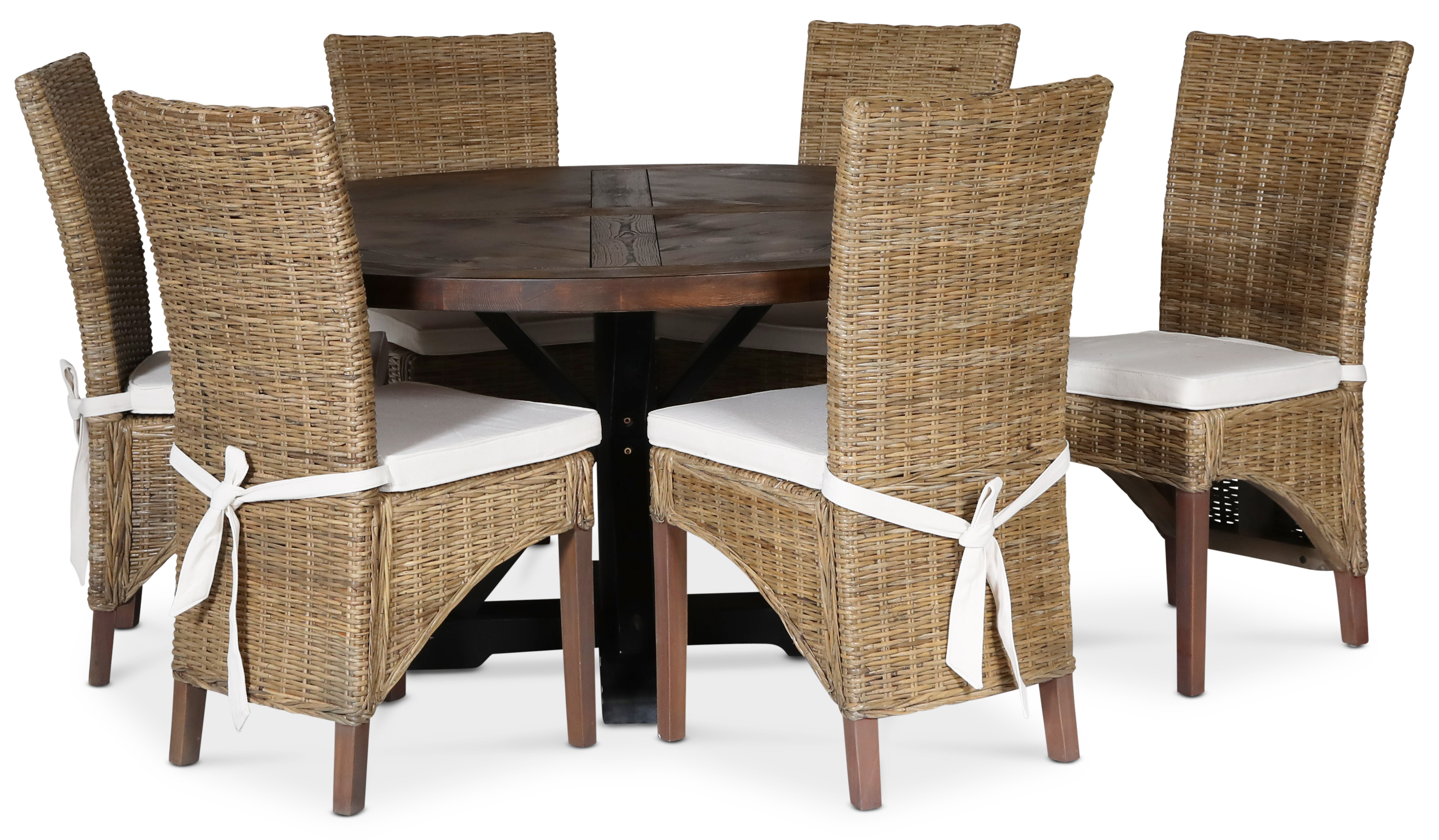 Tuva spisegruppe; rundt spisebord, Drivved / Svart + 6 Croco spisestoler med pute