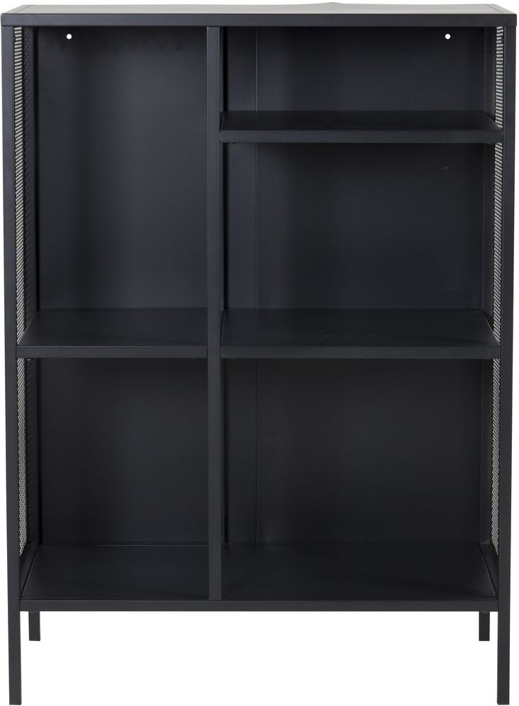 Praktisk skap laget i svart pulverlakkert metall. Skapet er utstyrt med 3 hyller og sider i netting, noe som gjør det luftig. Godt med plass under.