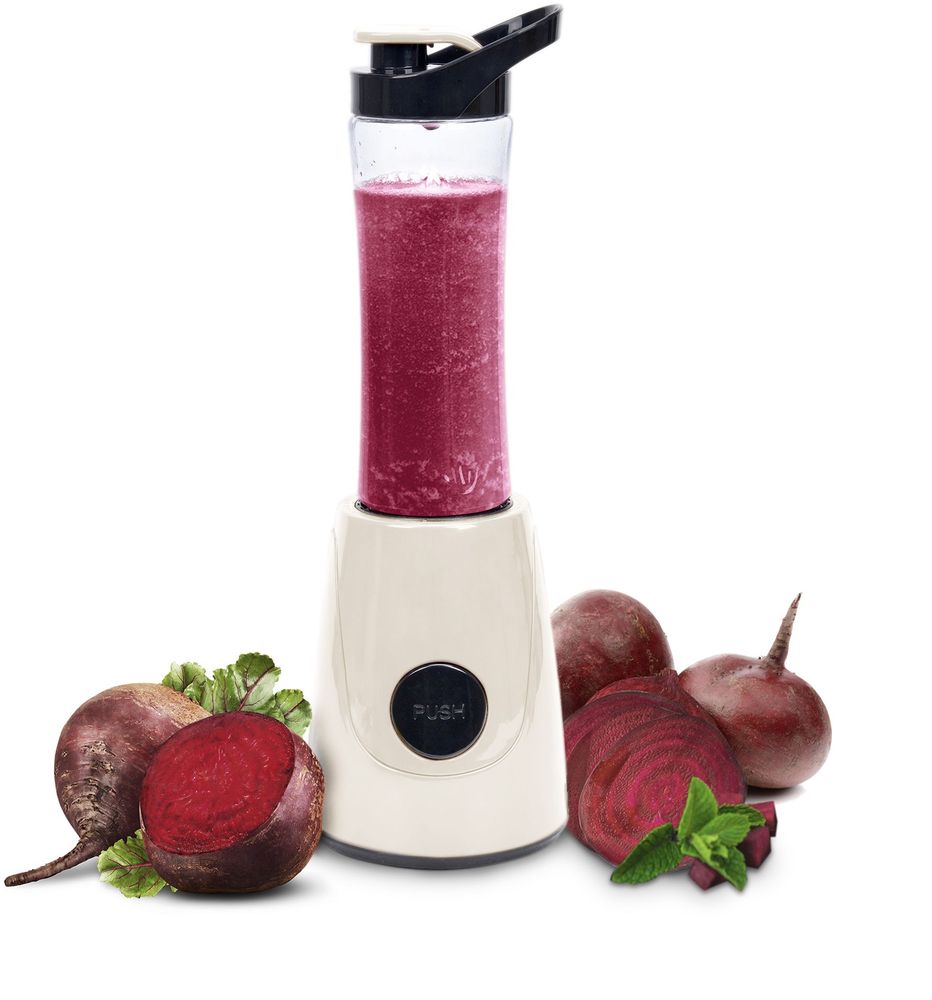 Praktisk kremhvit blender av holdbar tritanplast, PP og ABS. Kniver av 18/0 stål.