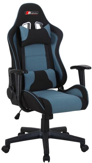 En koselig kontorstol med et moderne design. Stolen er laget av plast og metall, med en svært behagelig trekk i stoff som gir maksimal komfort. Til stolen følger det med to puter som støtter ryggen og nakken for ekstra bekvemmelighet. Stolen er også utrustet med tiltfunksjon samt at høyden er lett justerbar ved hjelp av spaken under setet. Stolen er også lett å flytte takket være hjulene på stjernefoten.