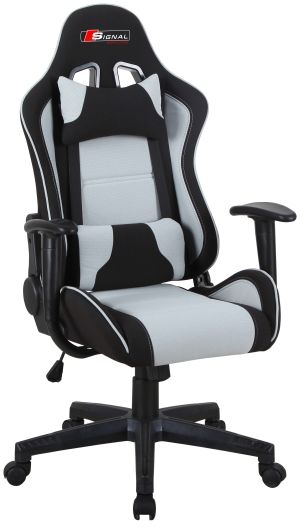 En koselig kontorstol med et moderne design. Stolen er laget av plast og metall, med et svært behagelig trekk i stoff som gir maksimal komfort. Det følger med to puter til stolen som støtter ryggen og nakken for ekstra bekvemmelighet. Stolen er også utrustet med tiltfunksjon samt at høyden er lett justerbar ved hjelp av spaken under setet. Stolen er også lett å flytte takket være hjulene på stjernefoten.