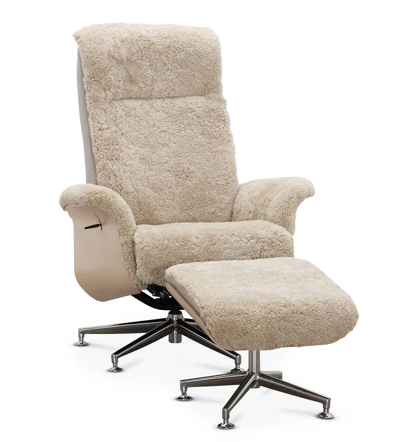 Ulla er en serie lenestoler og fotskamler i ekte saueskinn med reclinerfunksjon for å gi best mulig komfort.