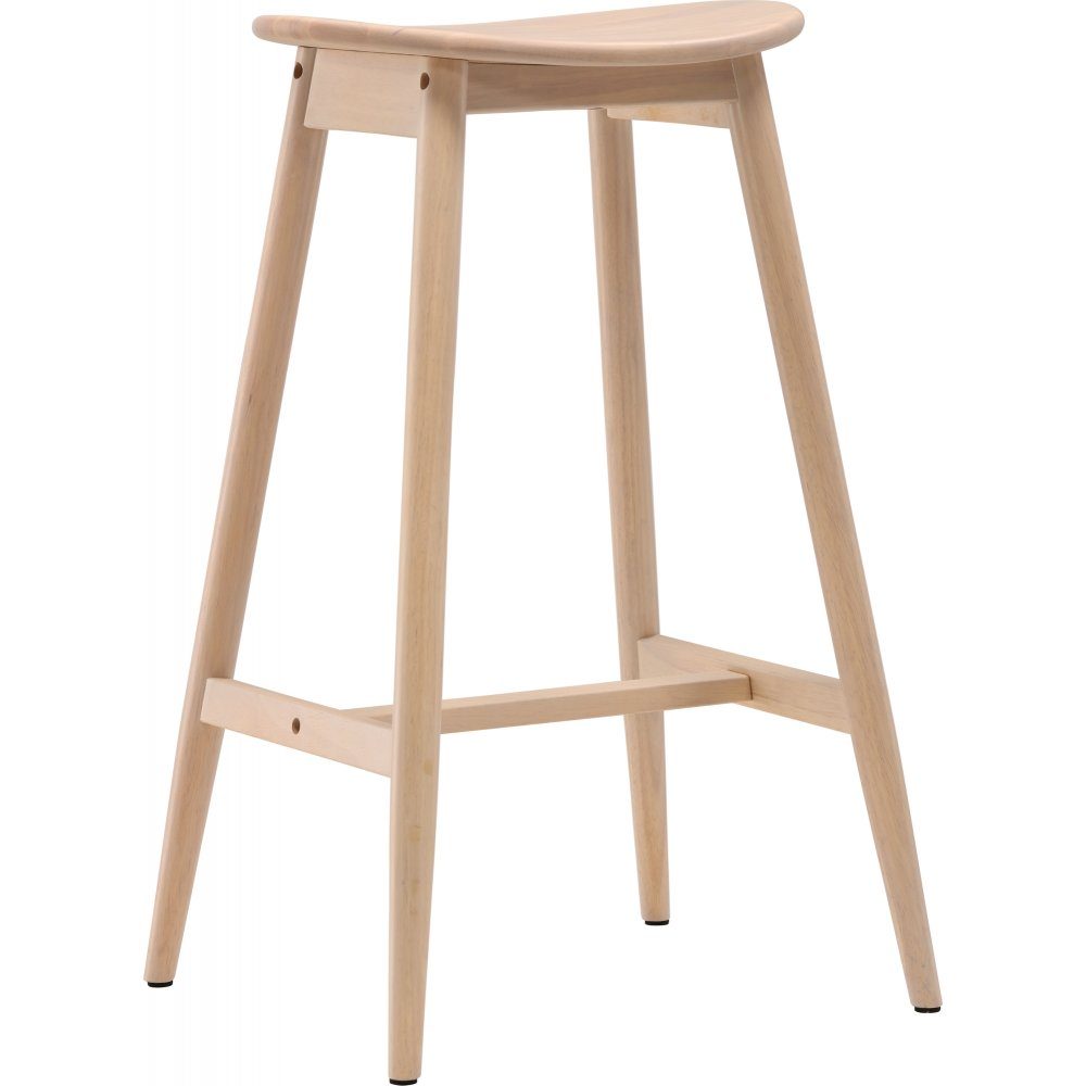 Orust barstol kombinerer enkelt design med moderne finish. Denne barkrakken er laget av hvitpolert tre med integrert fotstøtte for ekstra komfort. Sitteflaten er lett avrundet med en oval design som gjør et innbydende inntrykk. Plasser ved bardisken i hjemmet eller rundt det høyere spisebordet og nyt sosiale øyeblikk i fremtiden.