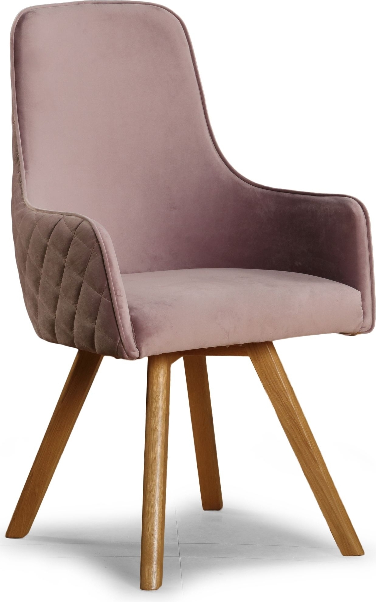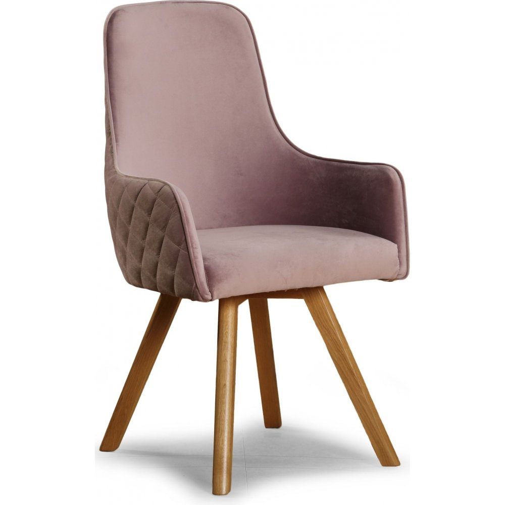 Utah lenestol, dekket i et rosa stoff med solide treben.