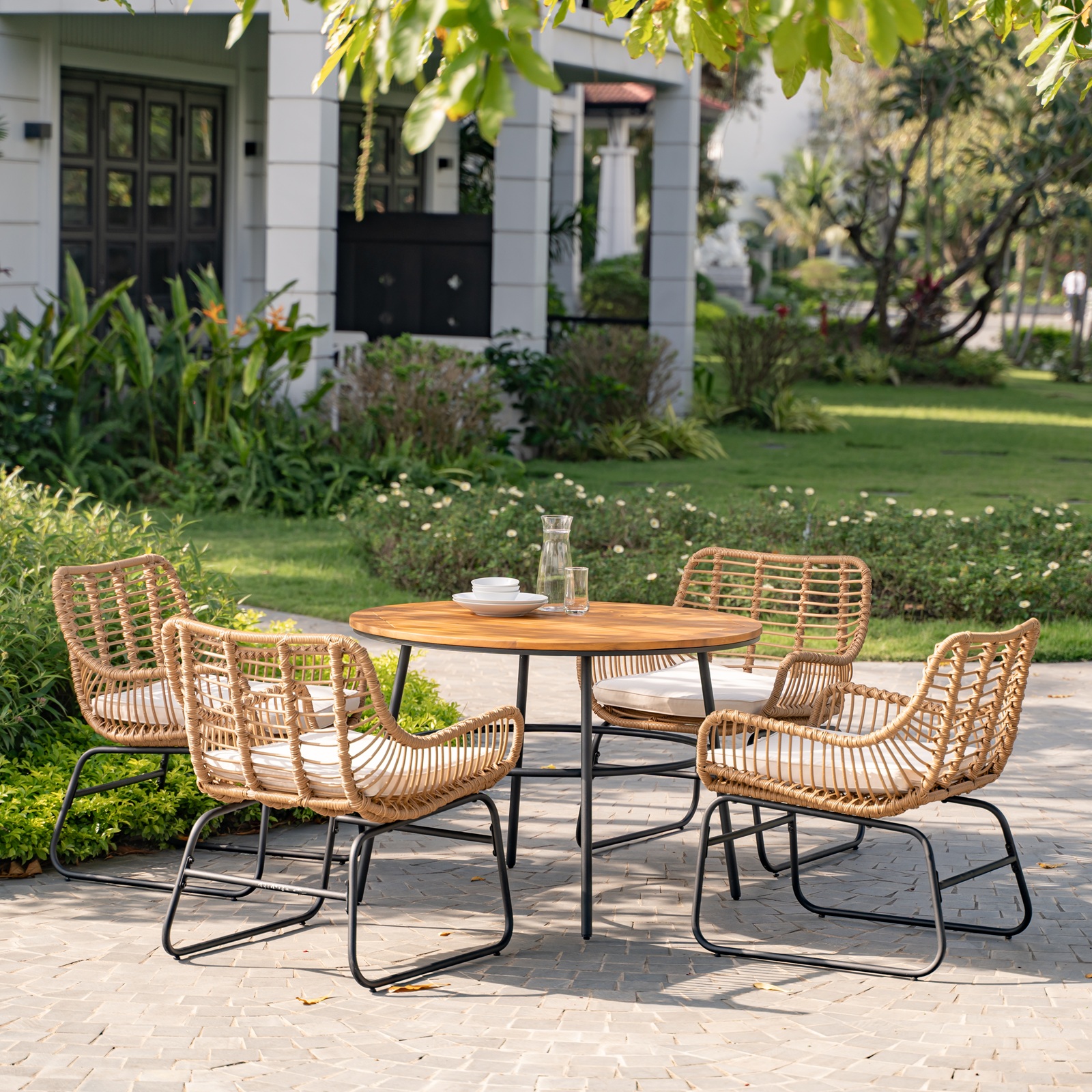 Sommer Utegruppe i kunstrotting - Spisegruppe med fire lenestoler og bord