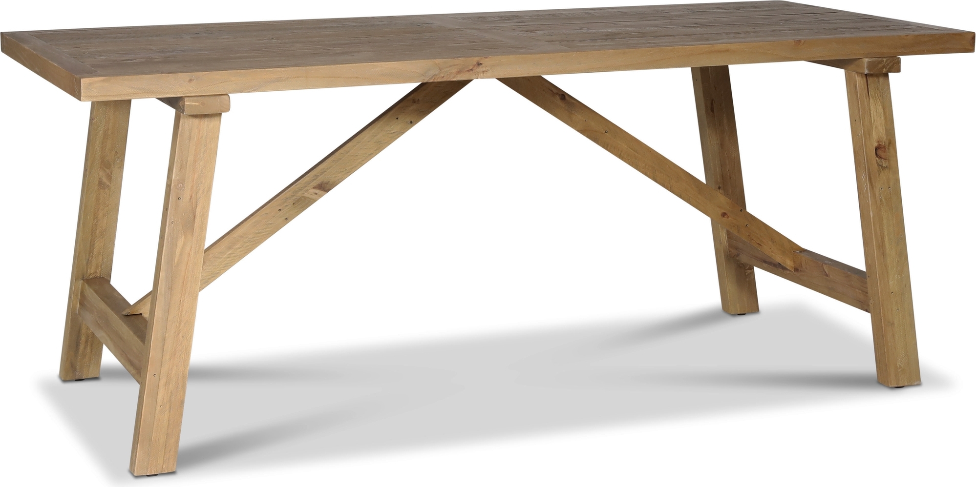 Hytte spisebord av soltørket resirkulert furu med variasjon i trematerialet for å gi riktig utseende og følelse.