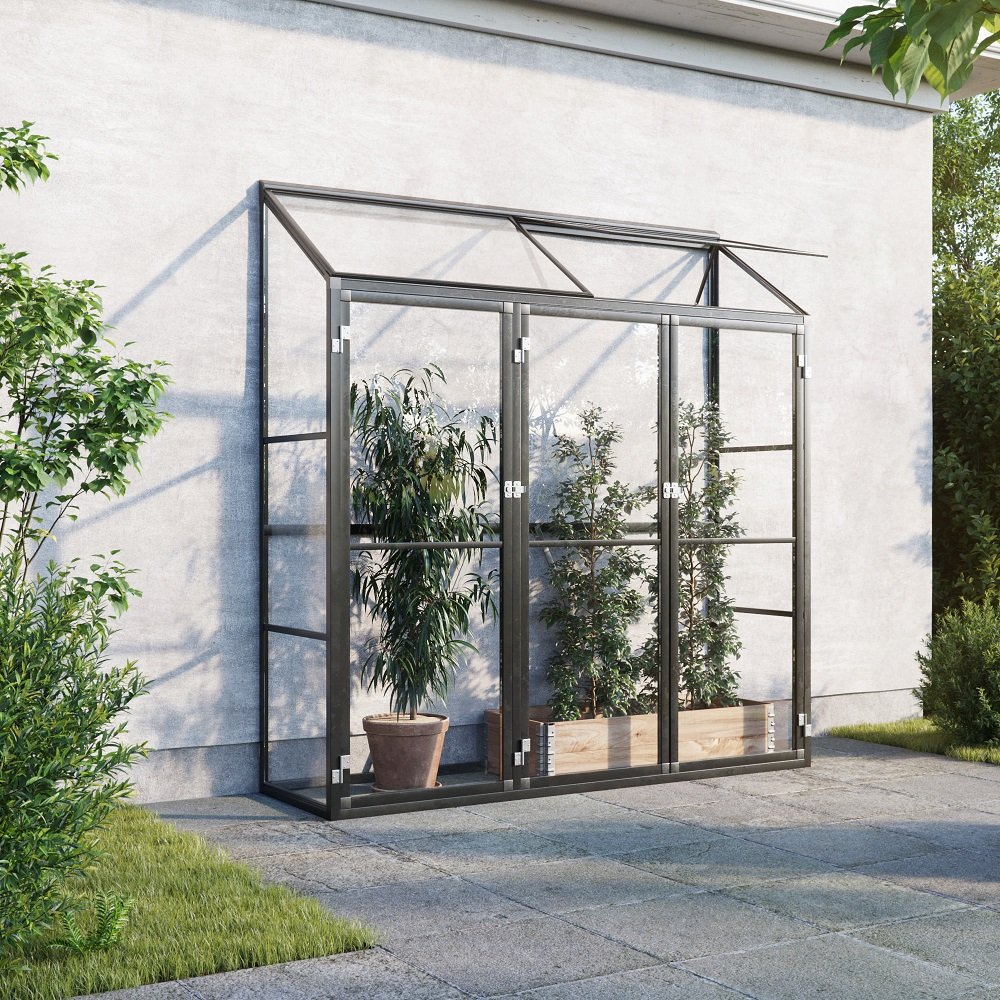Atlas veggdrivhus er et drivhus for den lille hobbydyrkeren eller for de med begrenset plass. Til tross for den slanke designen kan du få plass til mange potteplanter eller grønnsaker i dette lille minidrivhuset. Hvorfor ikke vokse sammen med barna og la dem plukke solmodne tomater og store grønne agurker? I kombinasjon med nytte og nytelse tilføres stil med drivhusets slanke sorte design.