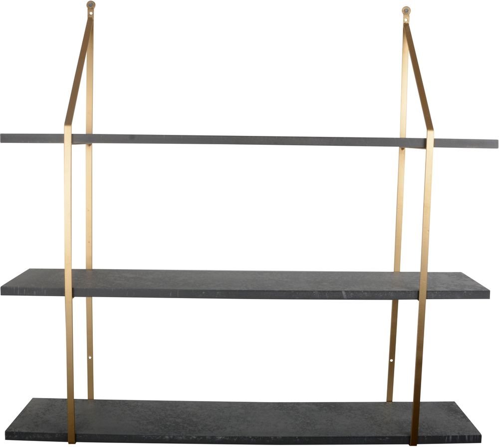 En pen vegghylle med en tidløs design. Selve rammen er av gullfarget metall og hylleplan er av MDF. Monteres lett på plass.
