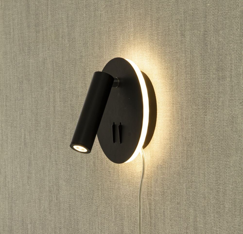 Vegglampe i svart versjon. Monteres enkelt på veggen. Backlight som også lyser opp veggen