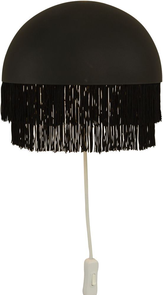 Vegglampe i svart versjon med svarte frynser. Monteres enkelt på veggen. Strømbryter på ledningen.