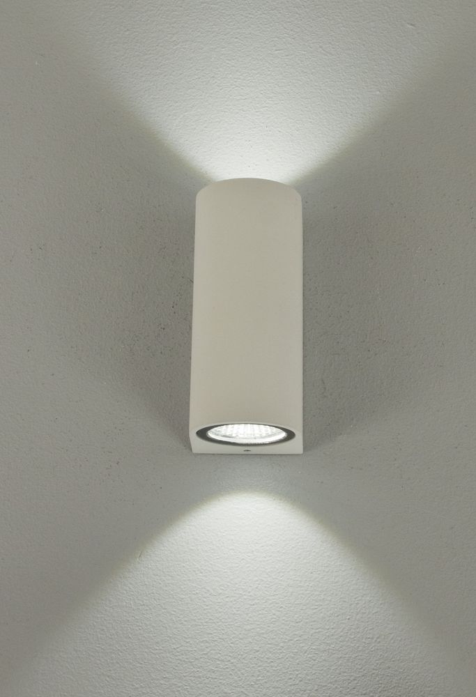 Utendørs vegglampe i hvitt metall. Monteres enkelt på husveggen.