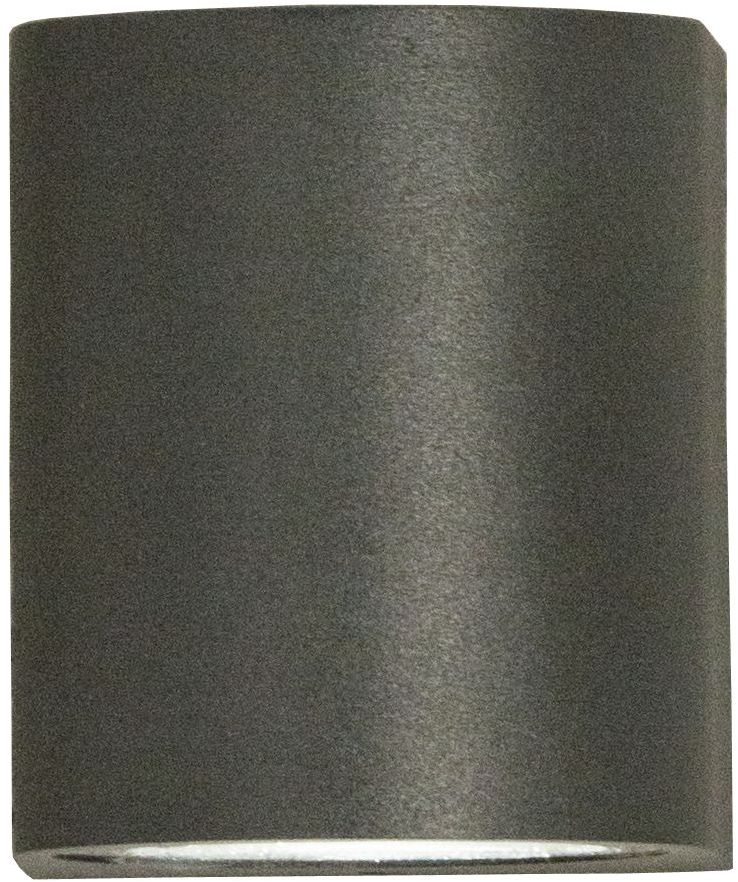 Utendørs vegglampe i mørkegrått metall. Monteres enkelt på husveggen.