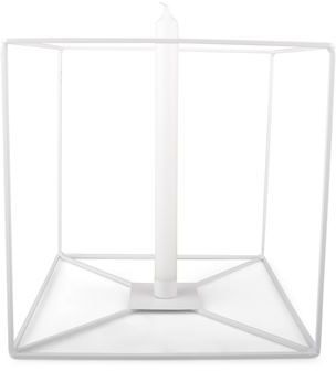 En pen lysestake i hvit metall som lett monteres på veggen med sikker avstand for å hindre brannskader på veggen.
