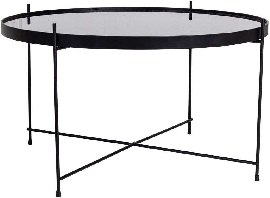 Salongbord i svart stål og glass.