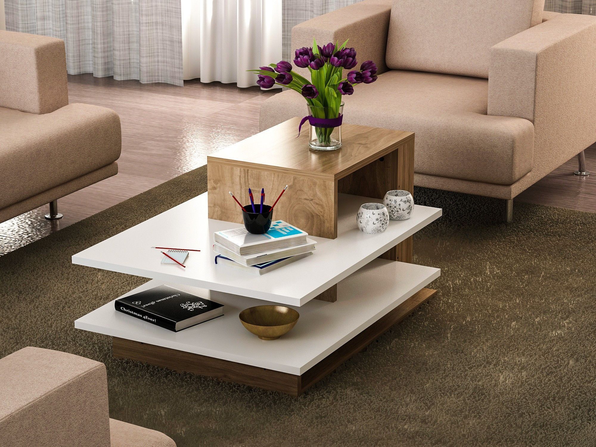 Venus salongbord - Hvit/valnøtt