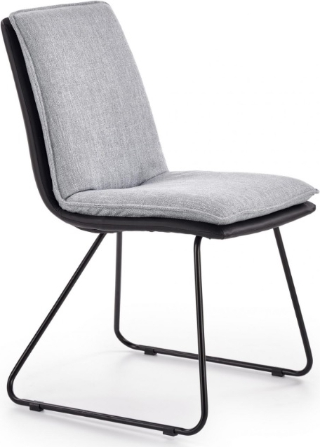 En herlig spisestol med et stilrent design. Stolen er dekket med en fantastisk blanding av stoff og syntetisk skinn for maksimal komfort, og basen er laget av pulverlakkert metall.