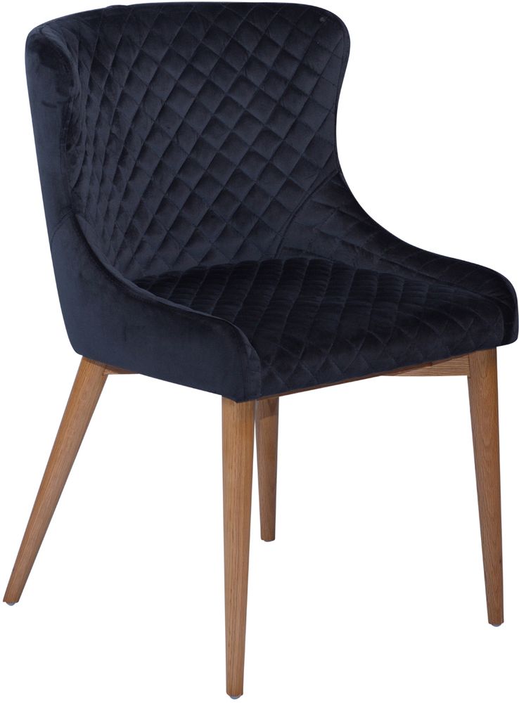 Elegant og komfortabel spisestol som passer perfekt på kjøkkenbordet eller til høytiden. Stolen er laget av tre og er dekket med et deilig og behagelig velurstoff. Bena er laget av fin naturlig eik.