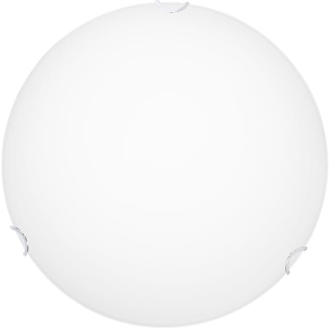 En stilren himling tilvirket i glass med detaljer i forkrommet metall.
