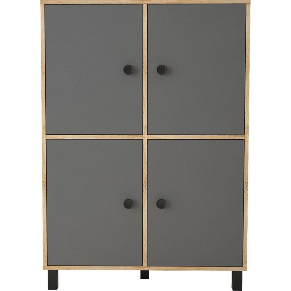 Skap laget av tre og metall.