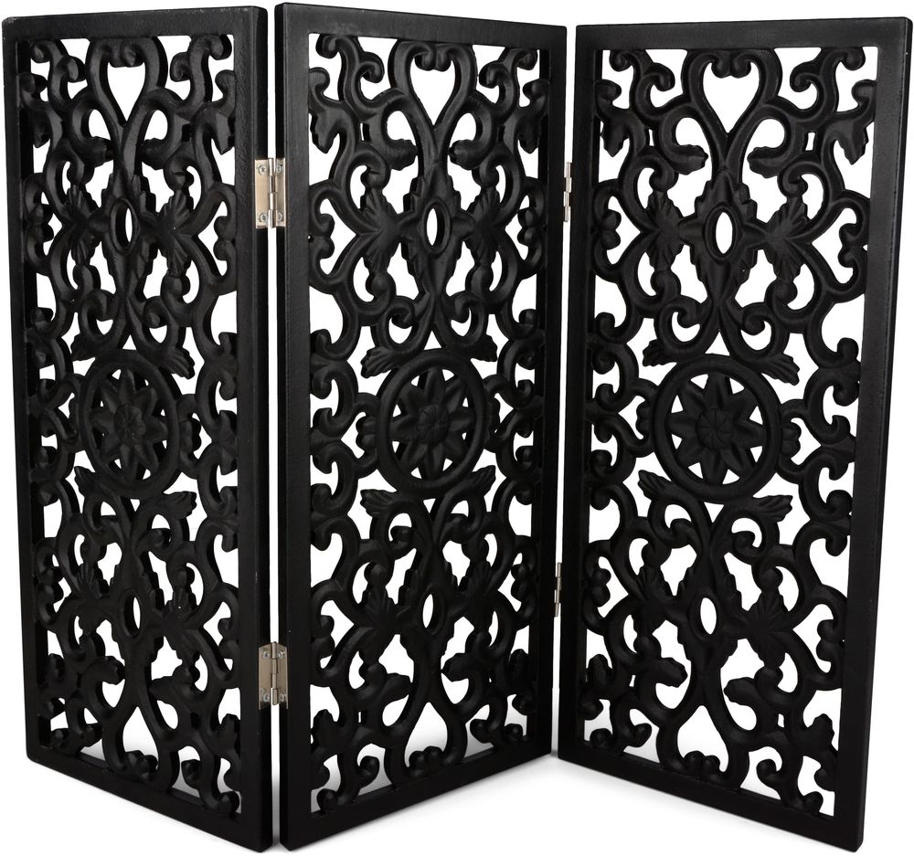 En pen dekorativ skjermvegg i MDF med svart utførelse.