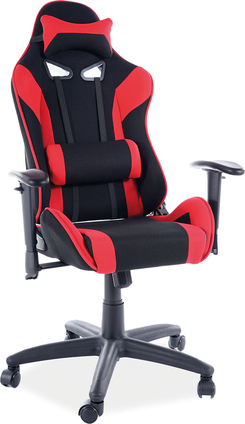 Kontorstol laget av metall og plast. Trukket med stoff.