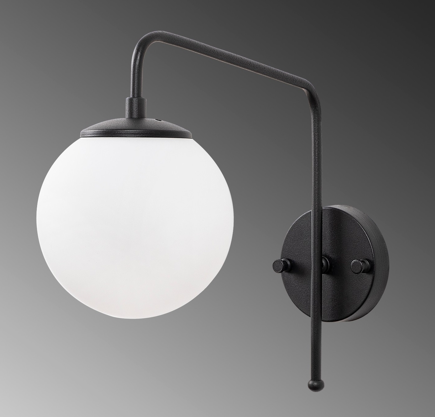 Vegglampe i metall og glass. Lyskilde ikke inkludert.