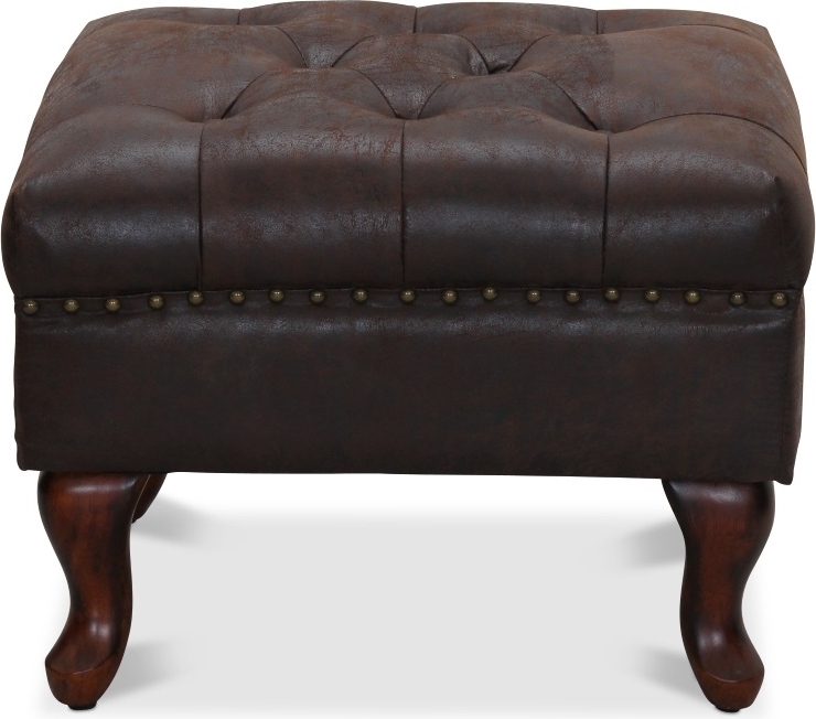Fotskammel dekket med vintage brunt stoff. Modellen har et sete med kaldskum og en innbakt pocketfjærkjerne.